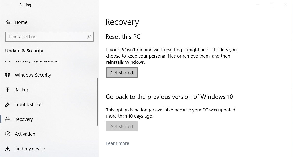 微软注意到,使用此版本,如果安装了下列可选功能,则从云中 Reset this PC 无法工作: