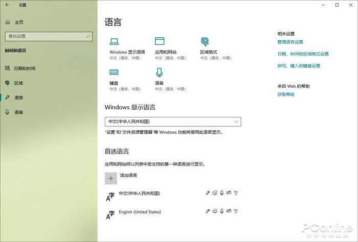 新版Win10对语言面板进行了重排,增加了一组新按钮。不过此次更新并未涉及到任何新功能,只不过是对原来功能做了一次梳理。