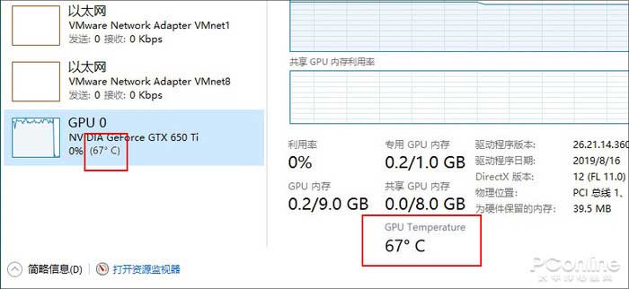 任务管理器中新增加的GPU温度显示